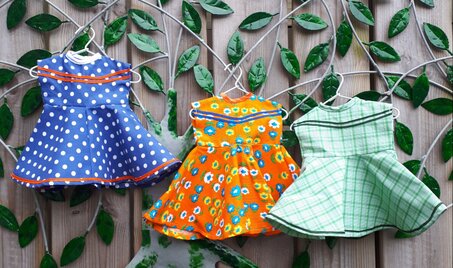 Evenals patroon P-5509 met een cirkelrokje. De jurkjes zijn in de winkel verkrijgbaar in meer dessins.